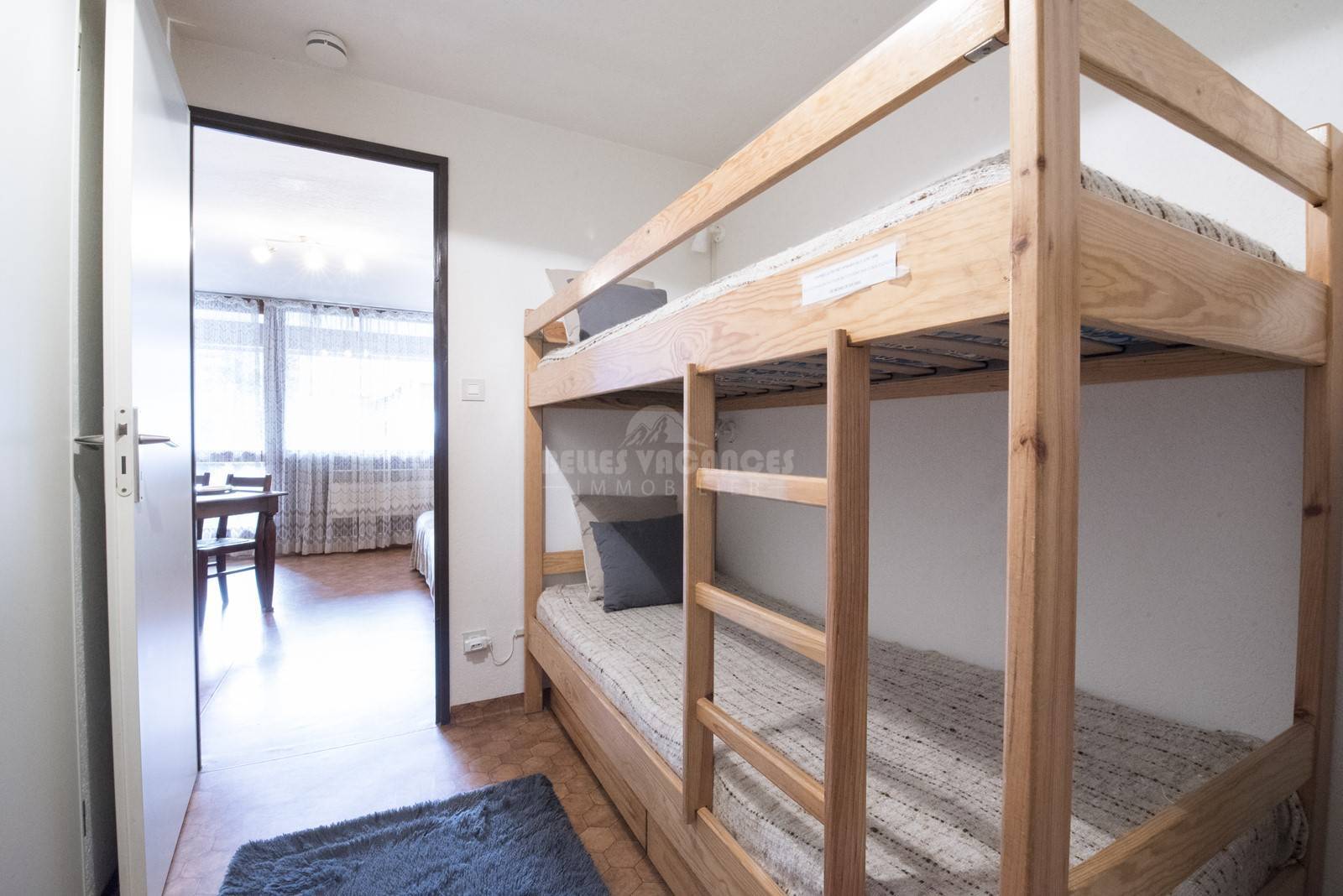 Dans l'entrée couloir vous trouverez 2 lits superposés, une salle de bains et des wc séparés.