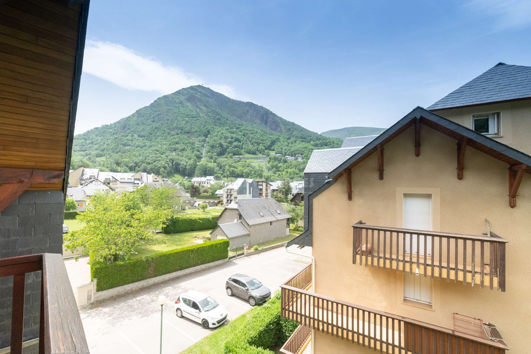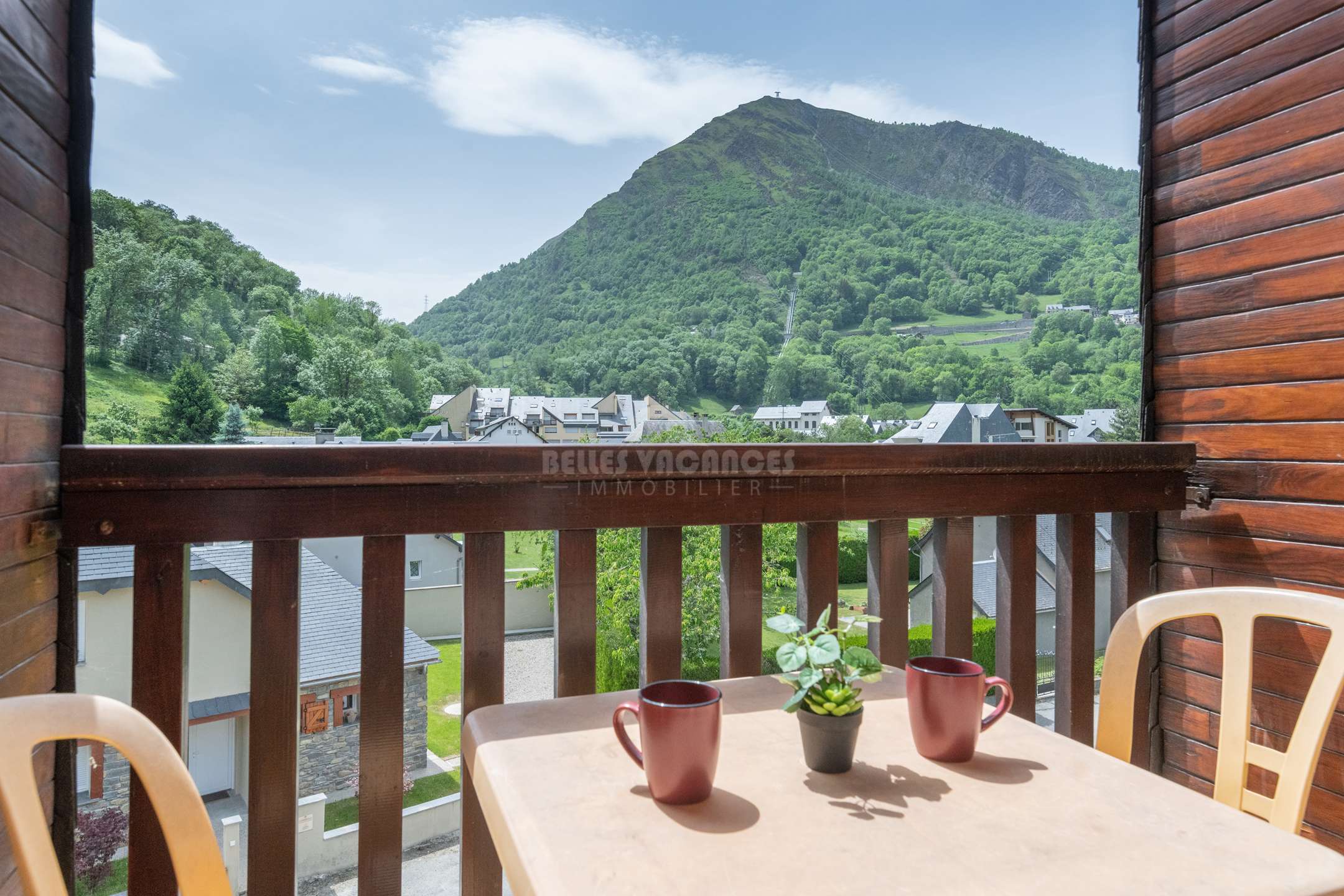 Entourée de verdure tout en étant proche des commerces et du téléphérique avec la vue sur les montagnes :