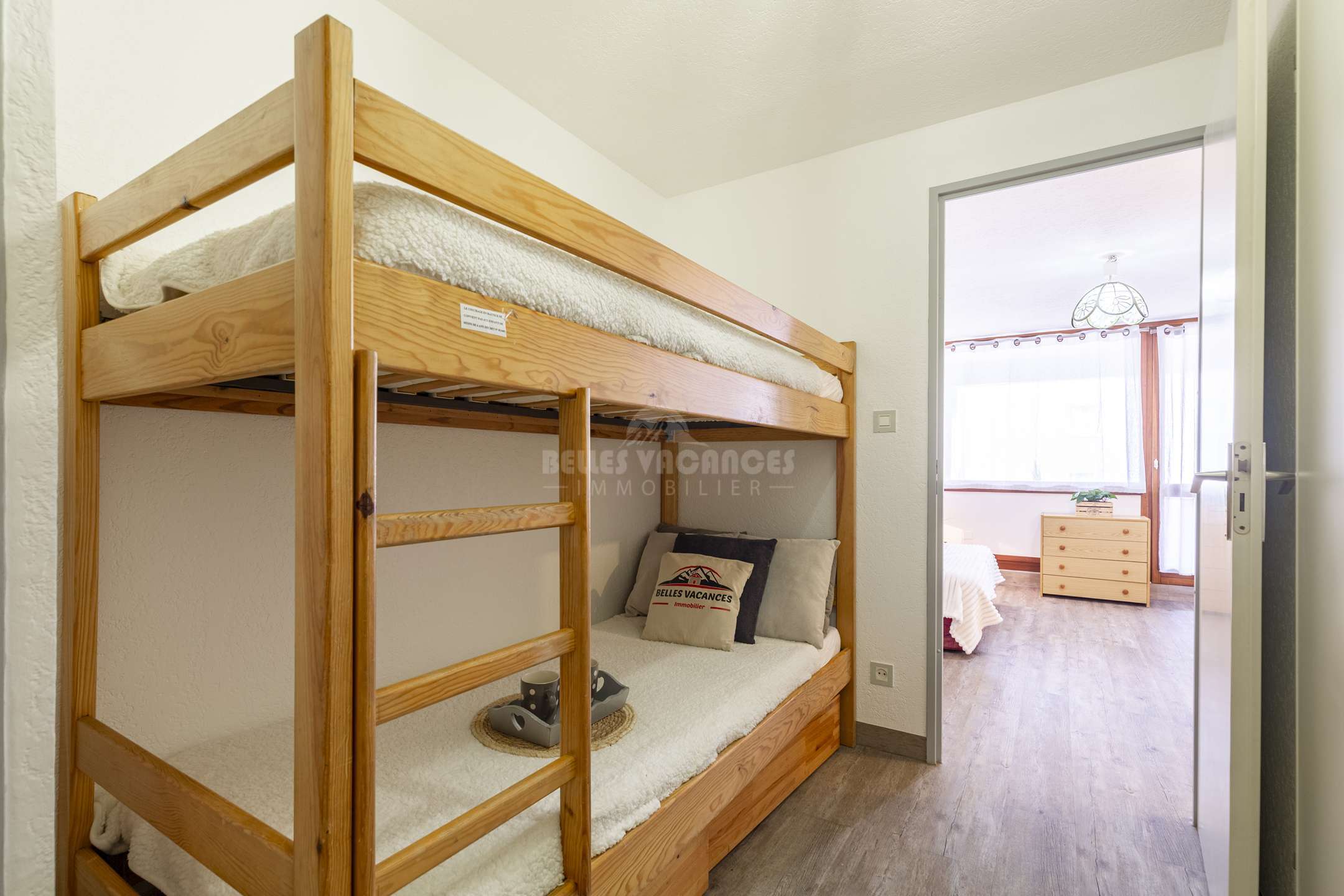 Dans l'entrée couloir vous trouverez 2 lits superposés, une salle de bains et des wc séparés.