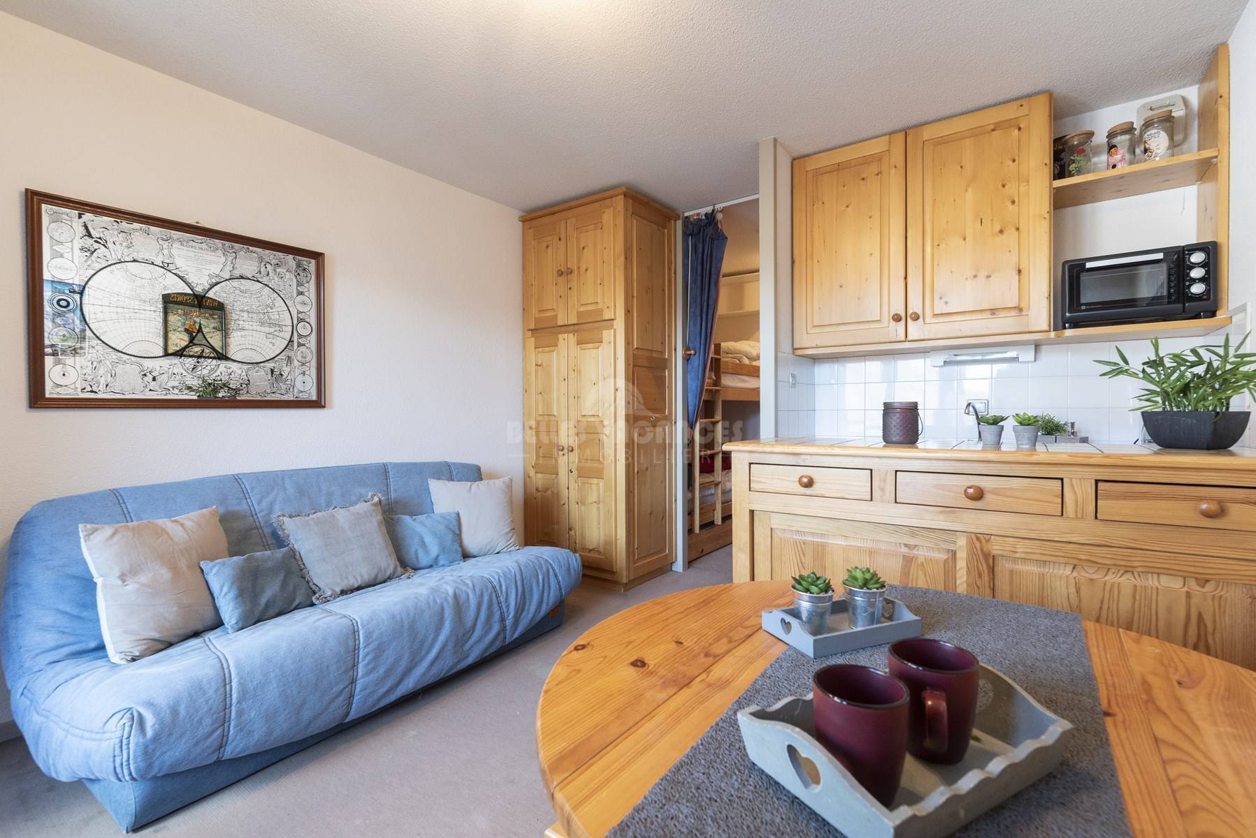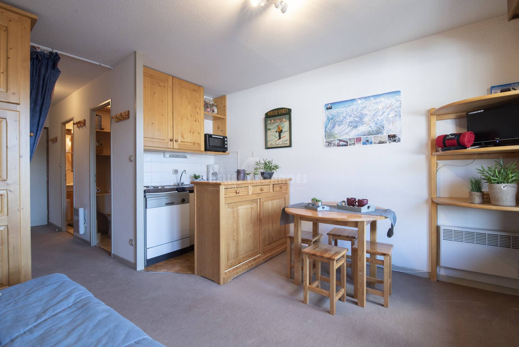 L'appartement que nous vous proposons est un studio coin nuit et convient pour 4 personnes.