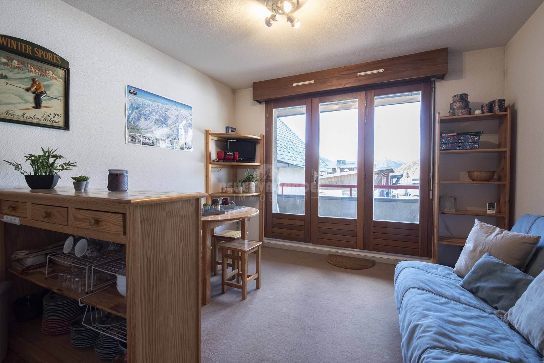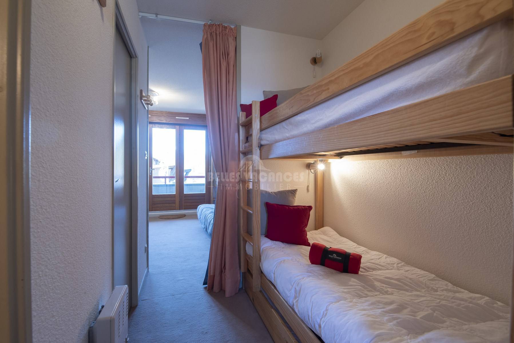 Au 1 er étage d'une surface de 23 m2, avec une exposition sud il dispose d'un balcon avec vue sur les pistes de ski.