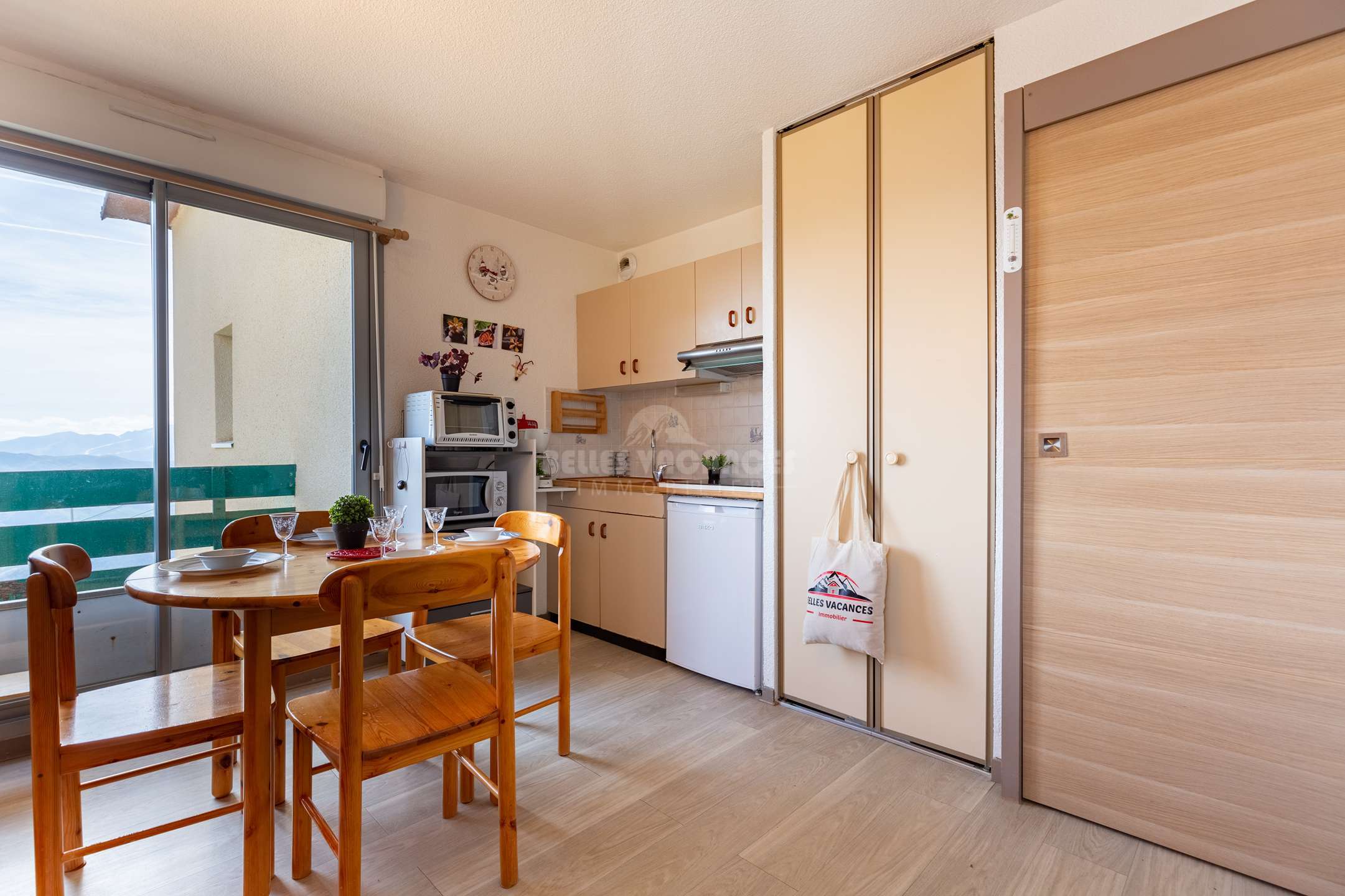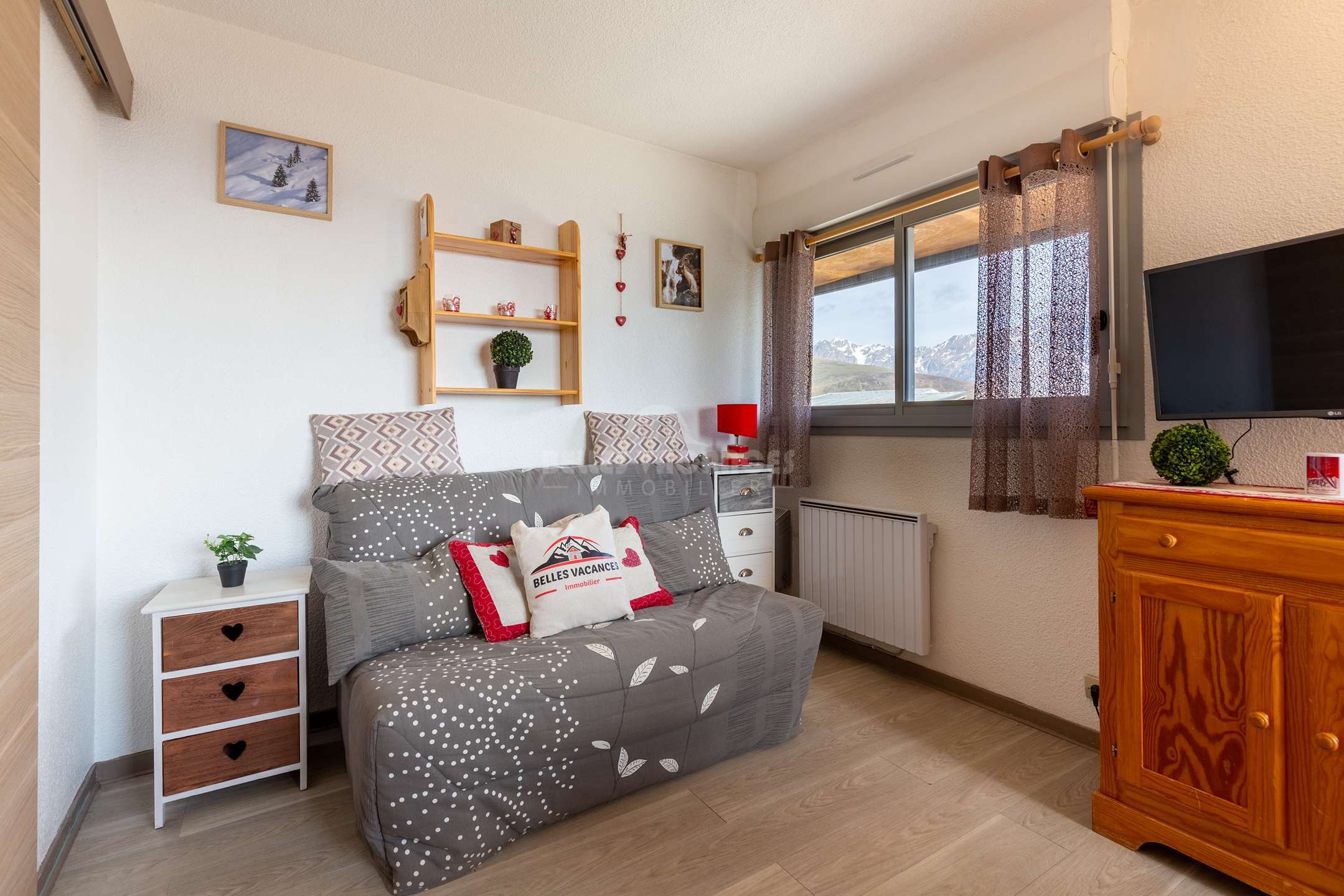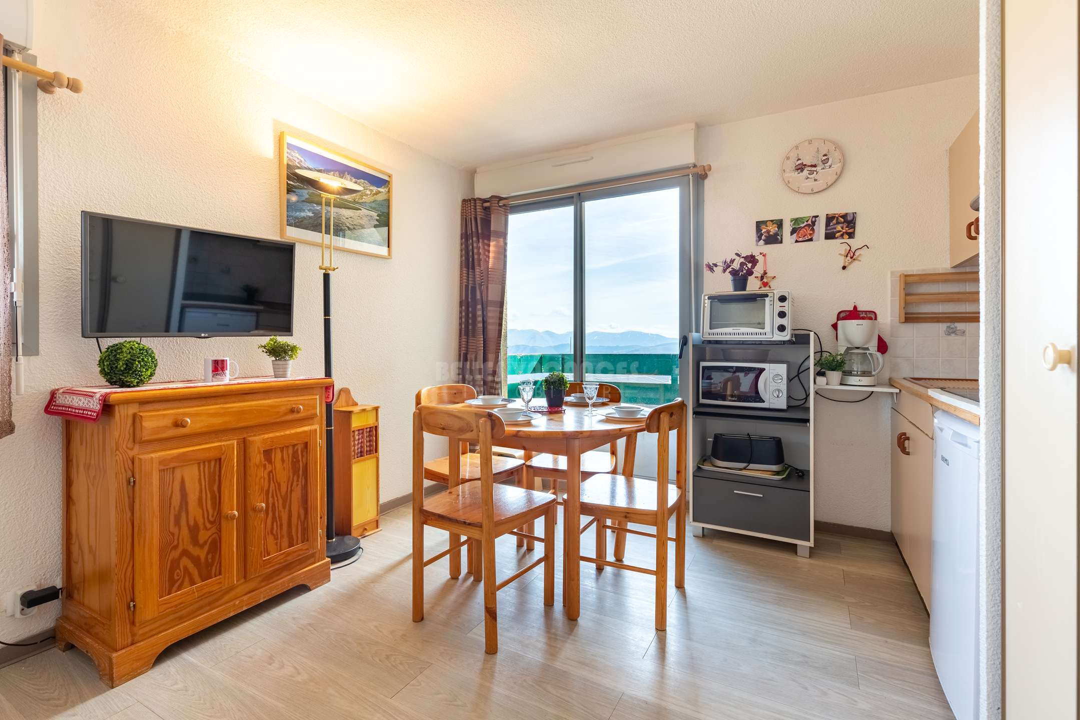 Grâce à une belle vitrée, vous pourrez profiter d'une belle vue sur la chaine de montagnes.