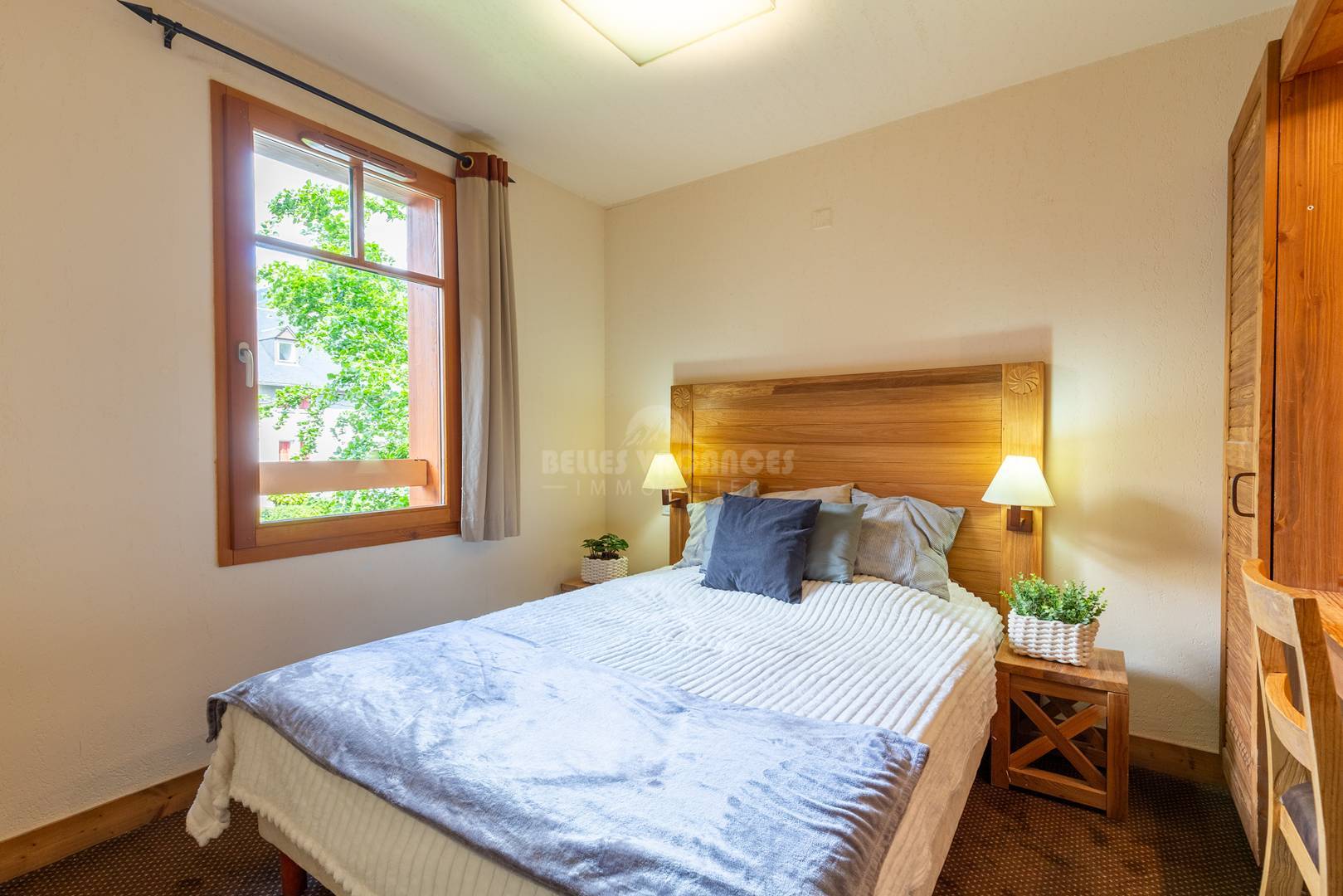 Une chambre avec un lit double