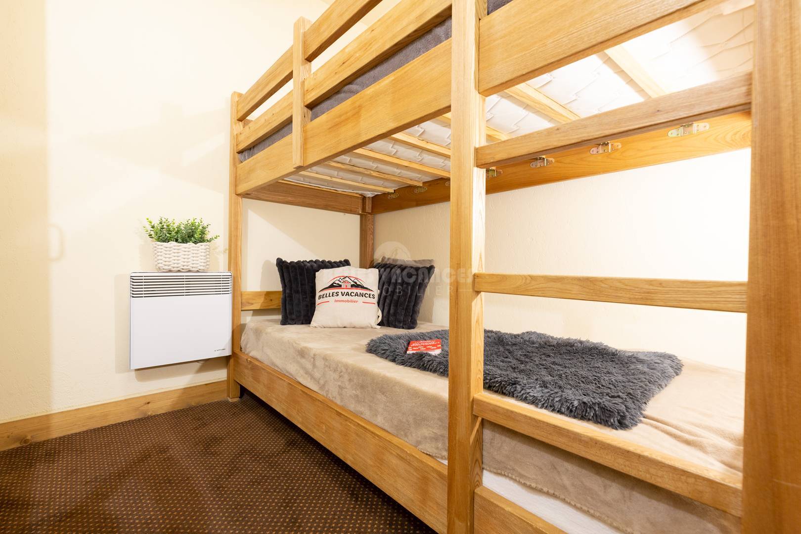 D'une entrée coin montagne avec 2 lits 1 place superposés