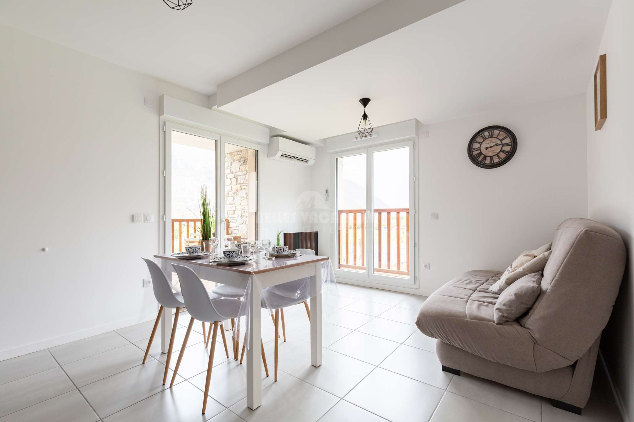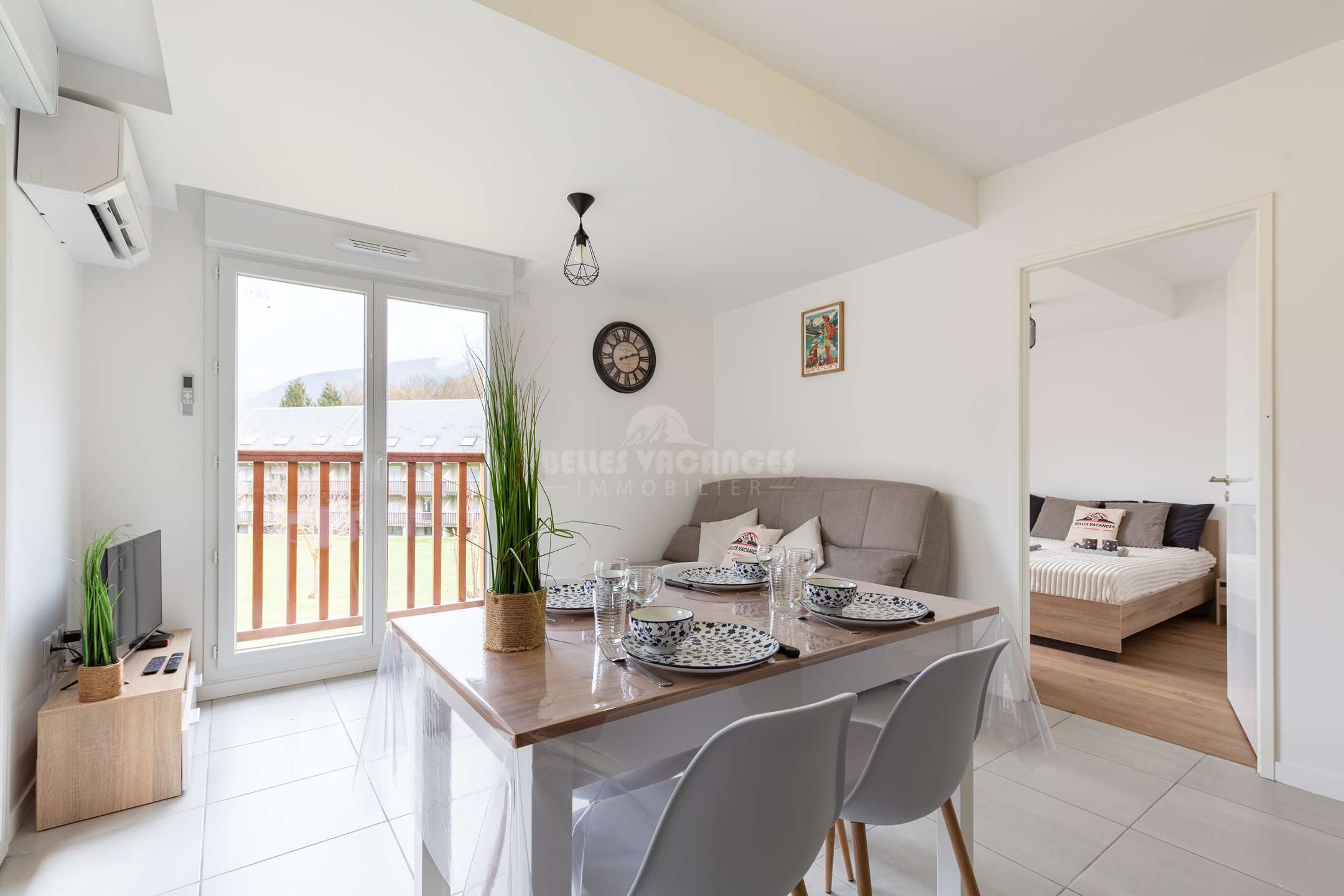 L’appartement peut accueillir jusqu’à 4 personnes grâce à une chambre équipée d’un lit double en 140 cm, deux lits superposés en 90 cm et un canapé convertible de 120 cm installé dans le séjour. Lumineux et convivial, l’espace de vie s’ouvre sur une terrasse offrant une vue imprenable sur les montagnes, parfaite pour se détendre après une journée de ski ou de randonnée.