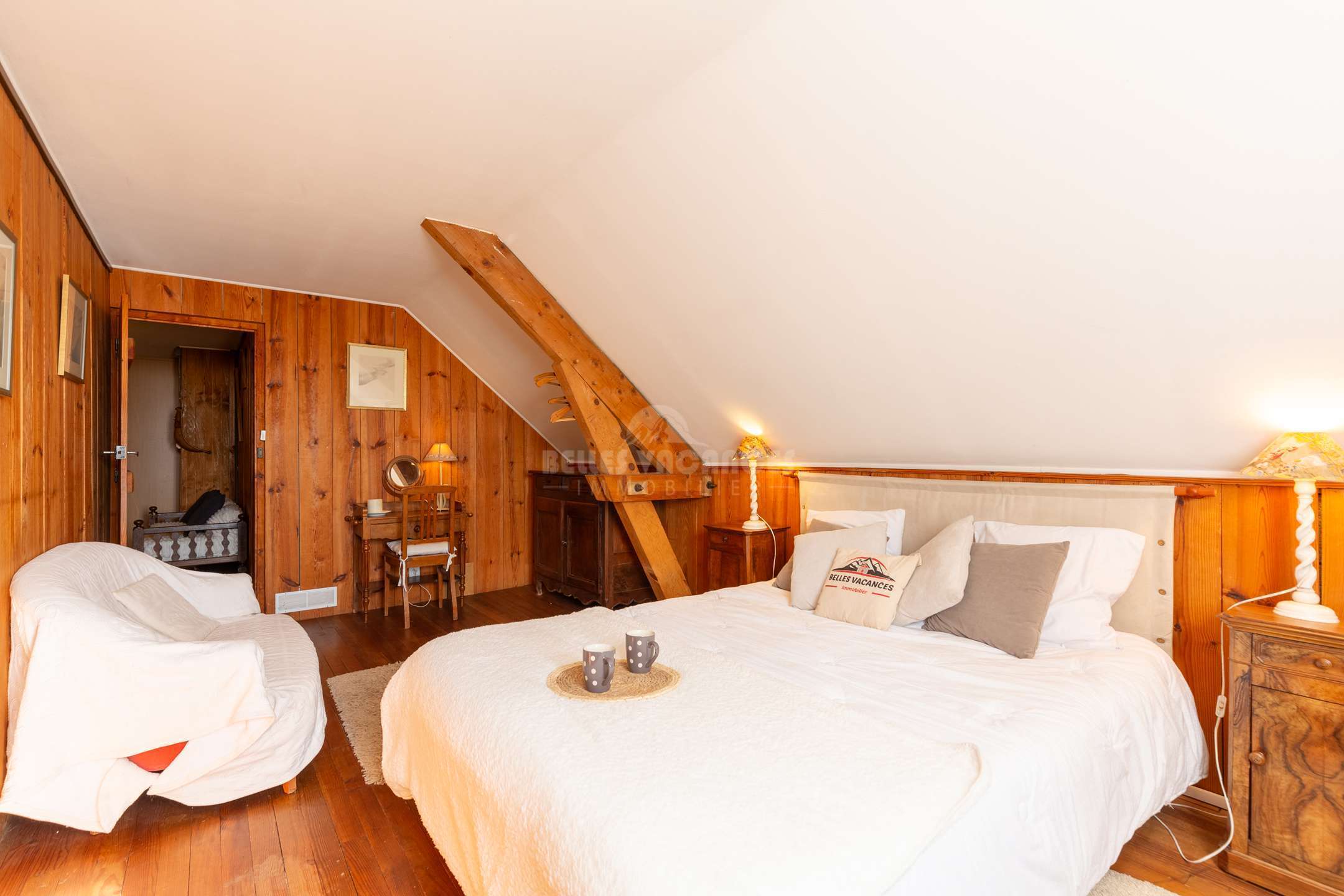 - chambre 2: 1 lit double en 180 ou deux lits simple en 90, 1 lit simple en 90 avec rangement et magnifique vue sur la vallée