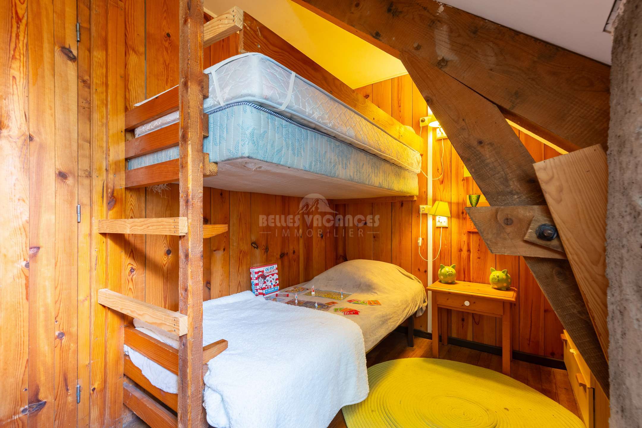 - chambre 3: 1 lit superposé en 90 ( convient à des enfants )