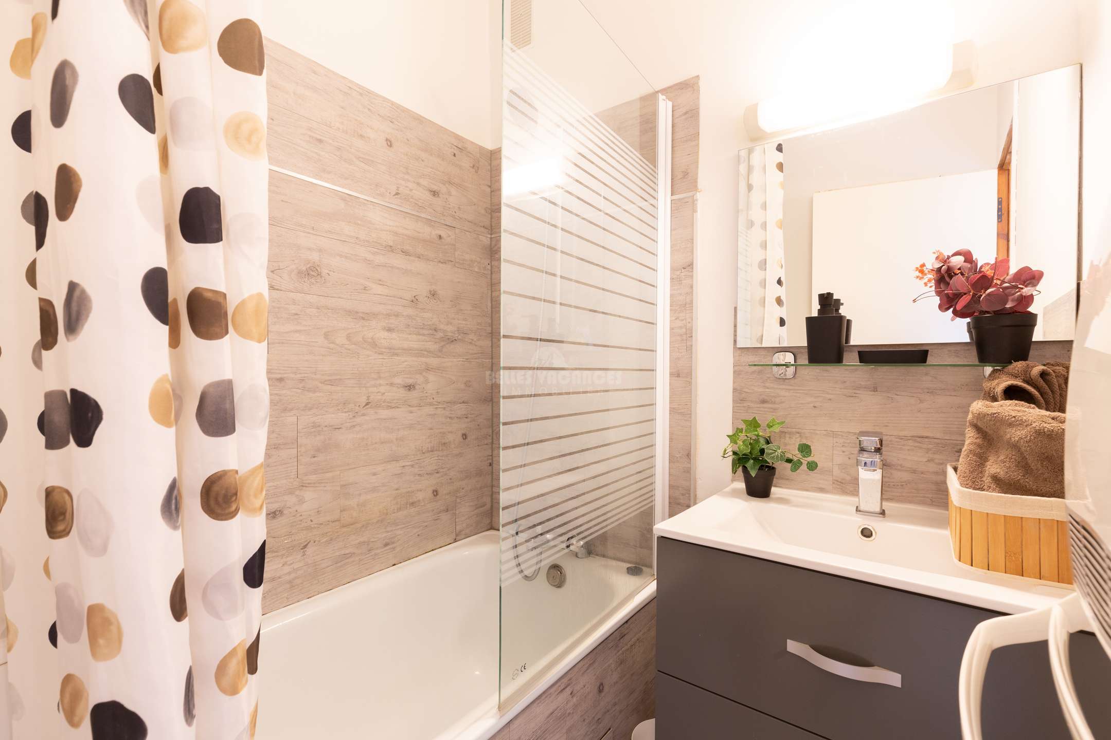 Produits ménagers et tapis de bain non fournis