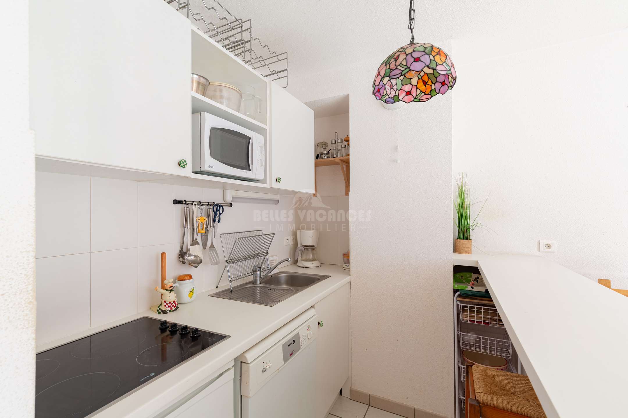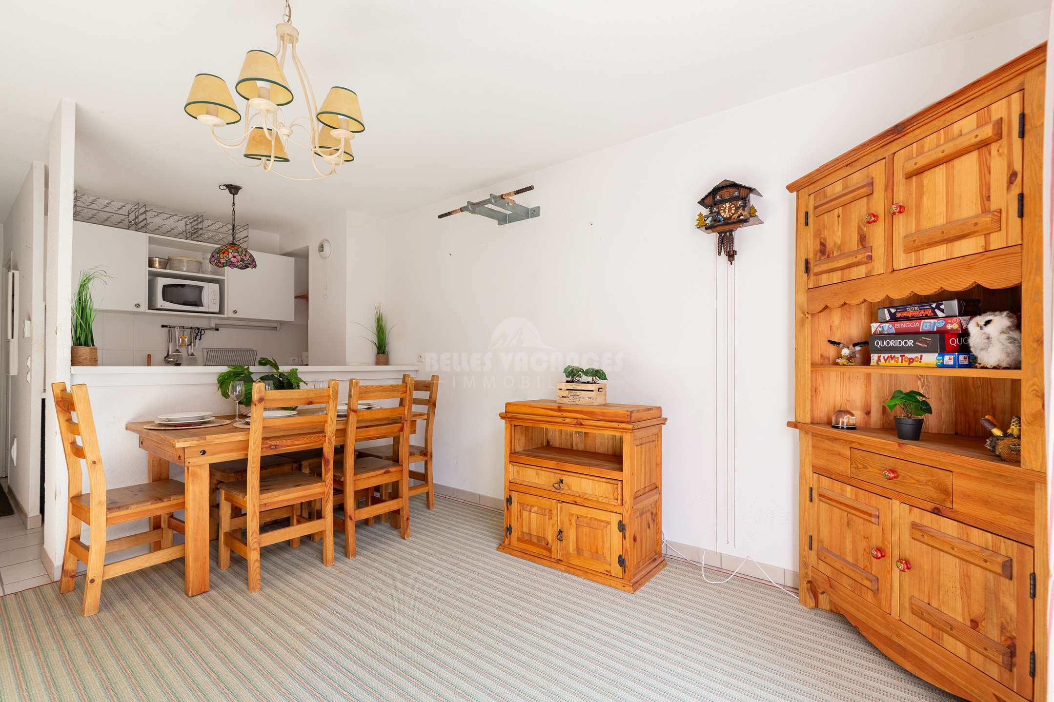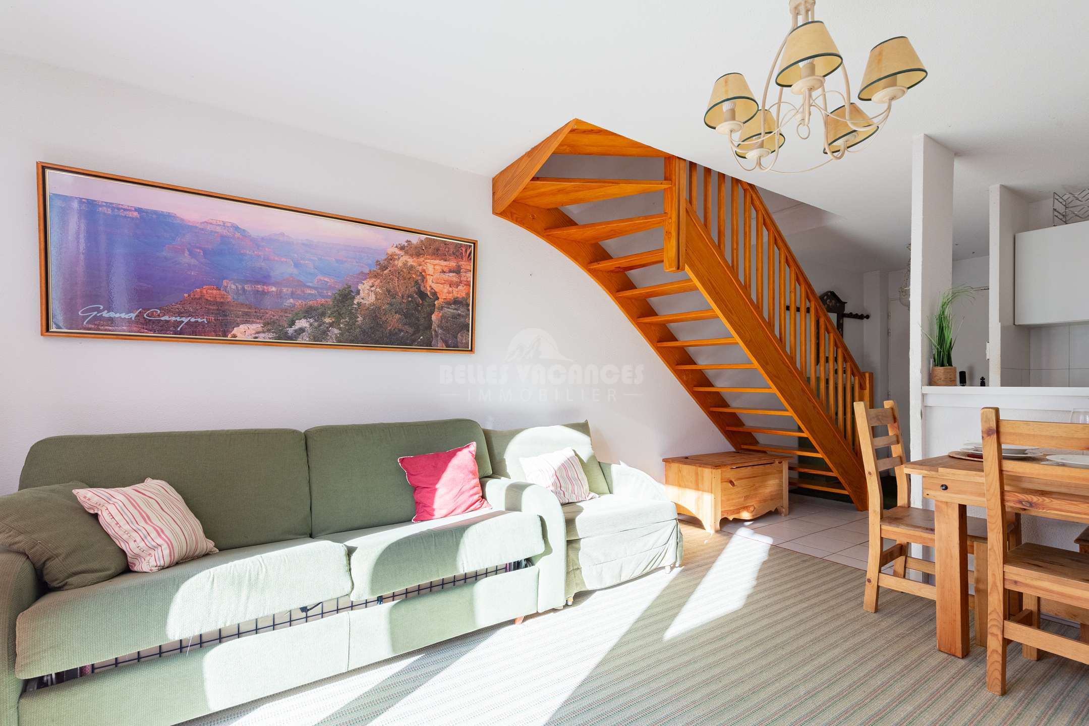 Le séjour peut également accueillir un lit d’appoint si besoin. La cuisine entièrement équipée vous permet de préparer facilement vos repas durant votre séjour.