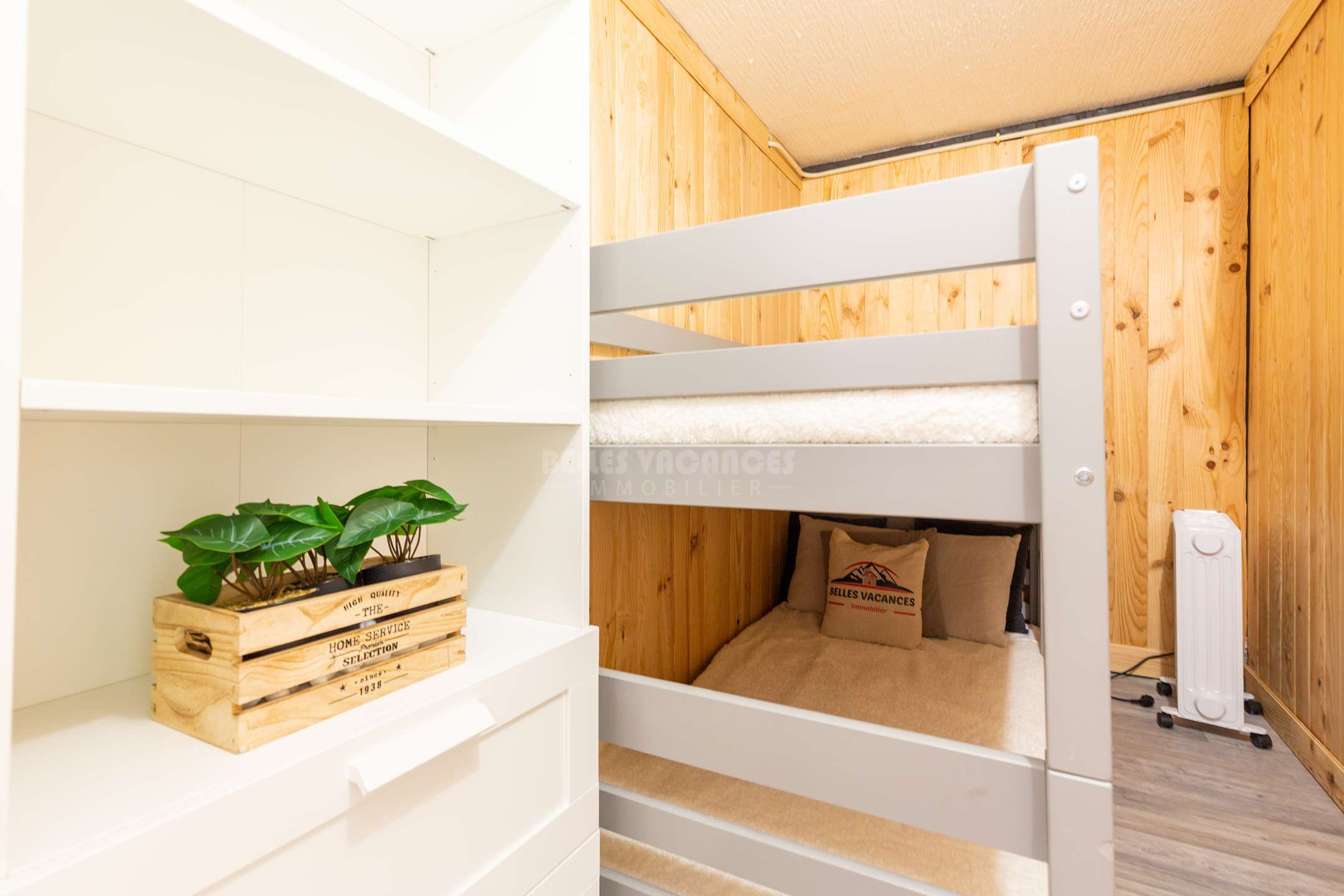 D'un coin cabine avec 2 lits superposés en 90