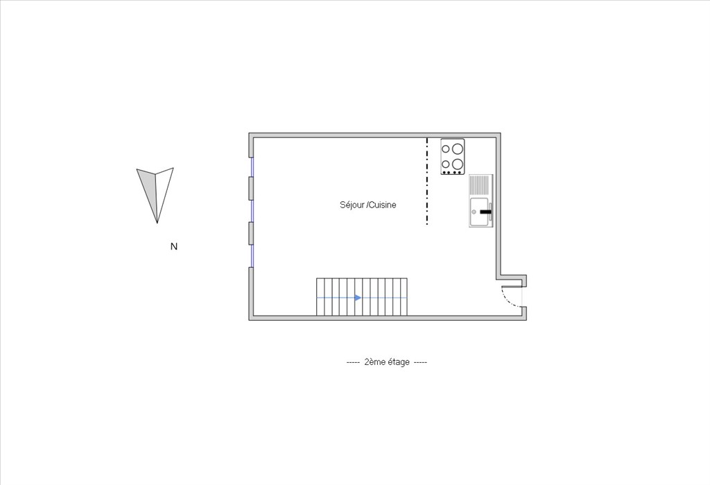 - Cuisine entièrement équipée ouverte sur un salon / séjour lumineux, exposition Sud-Est, très ensoleillée grâce à trois grands velux.